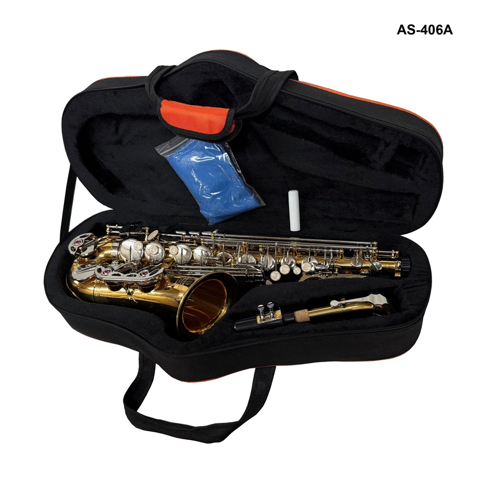 Саксофон-альт "Eb" BRAHNER AS-406A (Пр-во КНР) Selmer style, материал - желтая медь, покрытие корпуса - прозрачный лак, никелированое покрытие механики, французкая система, высокий F#, мундштук и фирменный кейс в комплекте