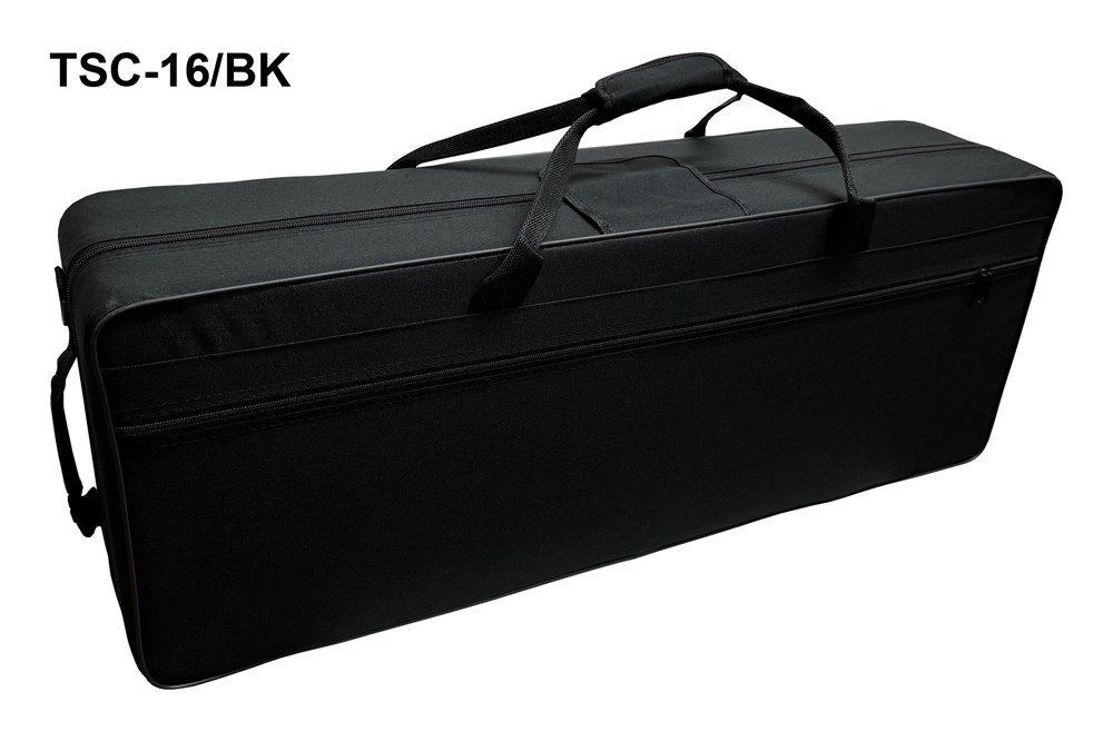 Кейс для саксофона-тенор TSC-16/BK - БЕЗ логотипа, прямоугольной формы, облегчённый, покрытие – водоотталкивающая ткань, карман для нот—формат А4 с внешней стороны, цвет-черный