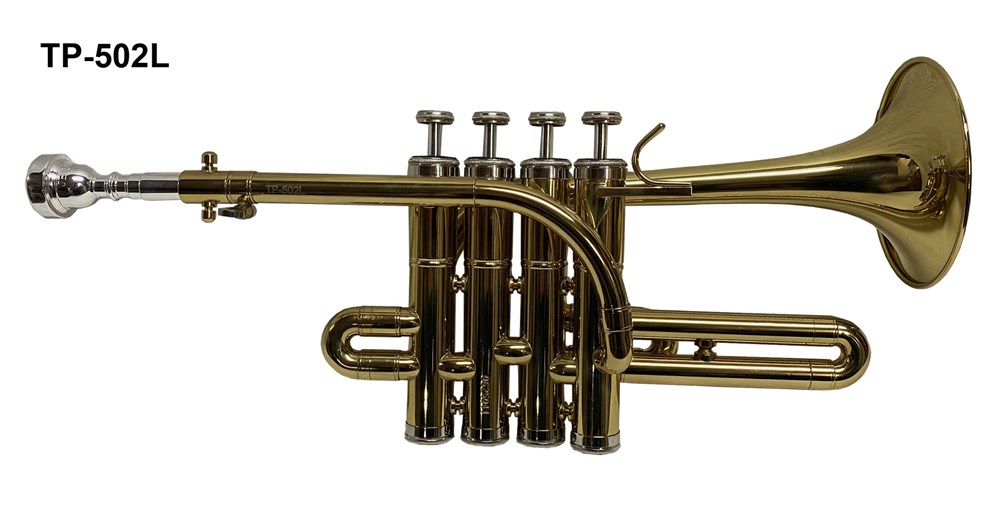Труба-пикколо ‘’Bb/А” BRAHNER TP-502L (Пр-во КНР) YAMAHA style, 4-х помповая, материал-желтая медь, покрытие-прозрачный лак, мензура 11,66мм, диаметр раструба 99,5мм, мундштук,кейс