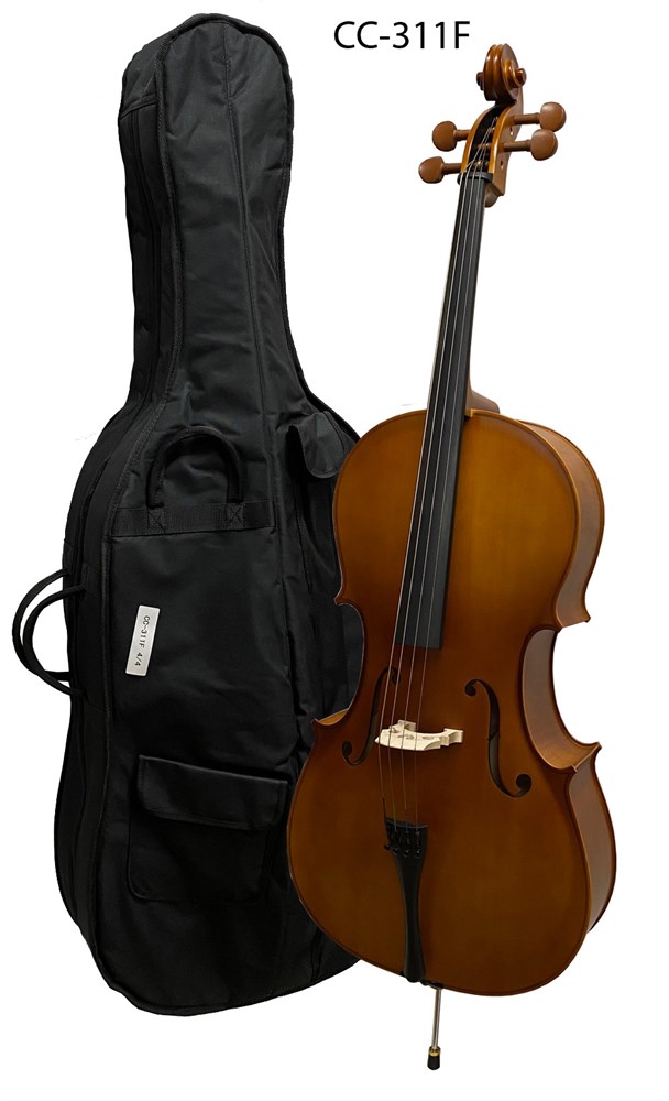 (Пр-во КНР) КОМПЛЕКТ- ЧЕХОЛ+СМЫЧОК+КАНИФОЛЬ, верхняя дека – ель, нижняя дека - клён, обечайка – клен, гриф – черное дерево (EBONY), шейка грифа – клен, колки - BOXWOOD, струнодержатель с 4-мя машинками микроподстройки, покрытие - матовый лак