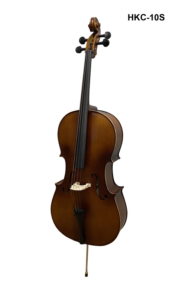 Виолончель HANS KLEIN HKC-10S 4/4 (Пр-во Германия) КОМПЛЕКТ-ЧЕХОЛ+СМЫЧОК+КАНИФОЛЬ, верхняя дека – ель МАССИВ, нижняя дека - клён МАССИВ, обечайка – клен , шейка грифа – клен, принадлежности – дерево твердых пород (цвет-черный), струнодержатель с 4-мя машинками микроподстройки, покрытие - матовый лак